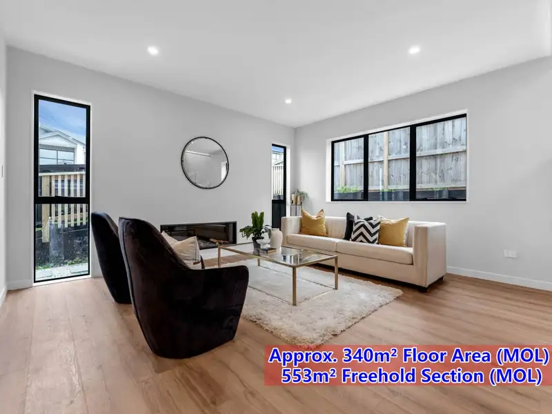 Additional Features: Internal Double Garage | Fully Fenced | Approx. 340m² Floor Area (MOL) | 553m² Freehold Section (MOL)