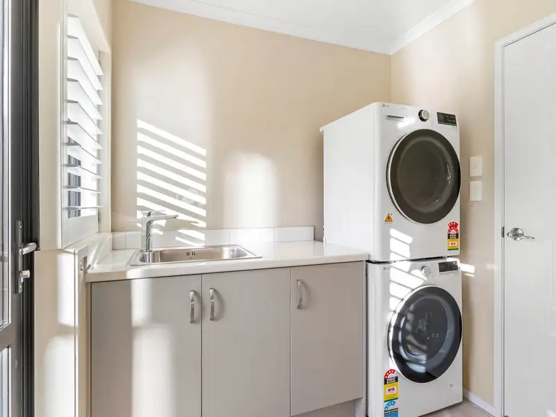 Off the hallway there are numerous storage cupboards and a laundry, also with built-in storage and outdoor access. Bedrooms are plentiful here – five in all, including the master with both fan and heat pump, walk in wardrobe, ensuite with bath and fully tiled shower and a sliding door out to the poolside patio and bubbling bliss in the spa. Three of the remaining four bedrooms have built-in robes, one has a heat pump and another, doubling as a large home office, boasts a walk-in robe. Placed between the bedrooms, a family bathroom is cleverly divided into three separate zones - vanity, toilet and bath and shower, conveniently facilitating individual use. The hallway also offers access to the double lock up garage with marine carpet and storage.