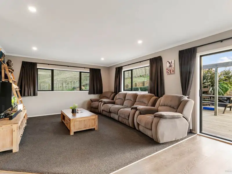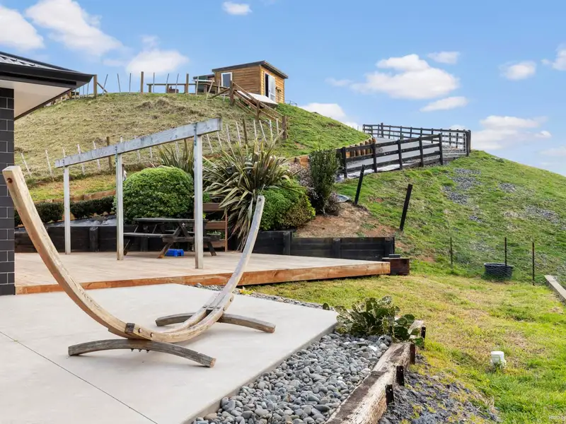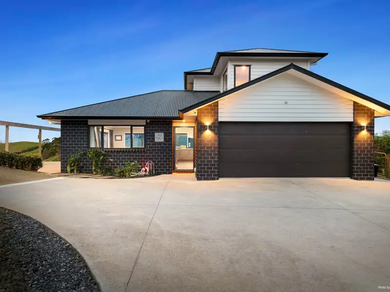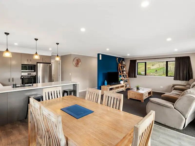 Escape to the countryside and enjoy the best of modern living in this beautifully appointed 2019-built home, perfectly positioned to soak in sweeping views of Onewhero’s rolling hills! Warm and welcoming being north-facing and double-glazed, offers sun-soaked living and seamless flow from indoors to out. The open-plan dining/living area opens directly to a private decked and patio area – the perfect spot to unwind with a glass of wine as the sun sets over the landscape. Boasting three bedrooms and two bathrooms, the home features a spacious downstairs master suite complete with walk-in robe and stylish ensuite. The double internal garage adds convenience, while a separate sleepout nestled up on the hill provides extra space for guests, teens, a home office or hobby room! Set on approximately 6,336m² (1.5 acres), this well-laid-out lifestyle property includes four fenced paddocks, ideal for pets or a few animals - Whether you’re starting your lifestyle journey or downsizing from a larger block, this home combines modern comfort, space, style, and peaceful rural charm.