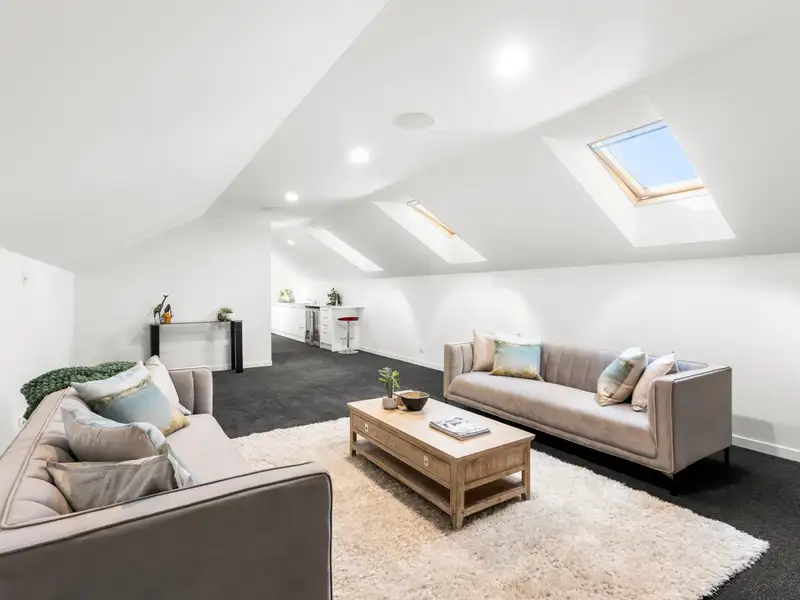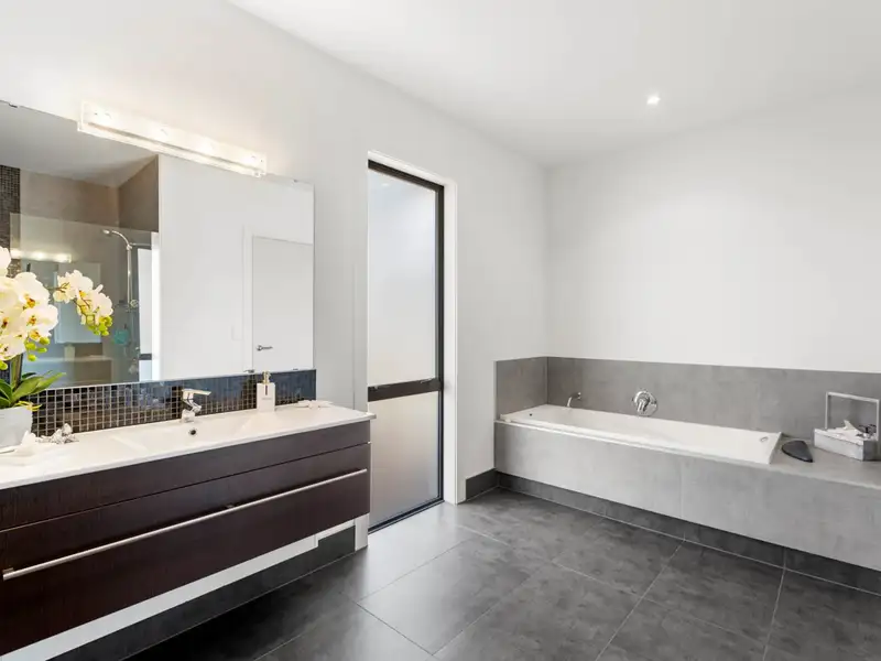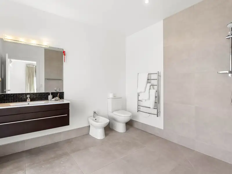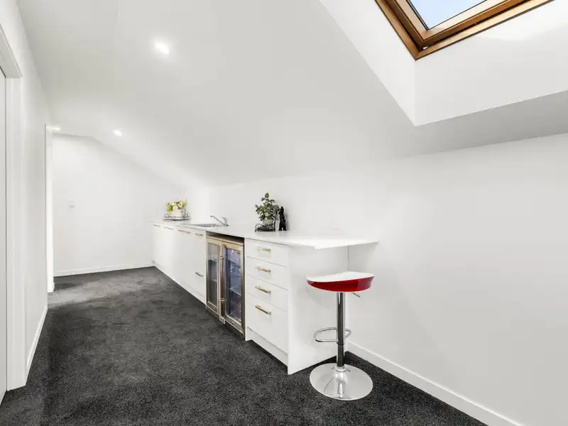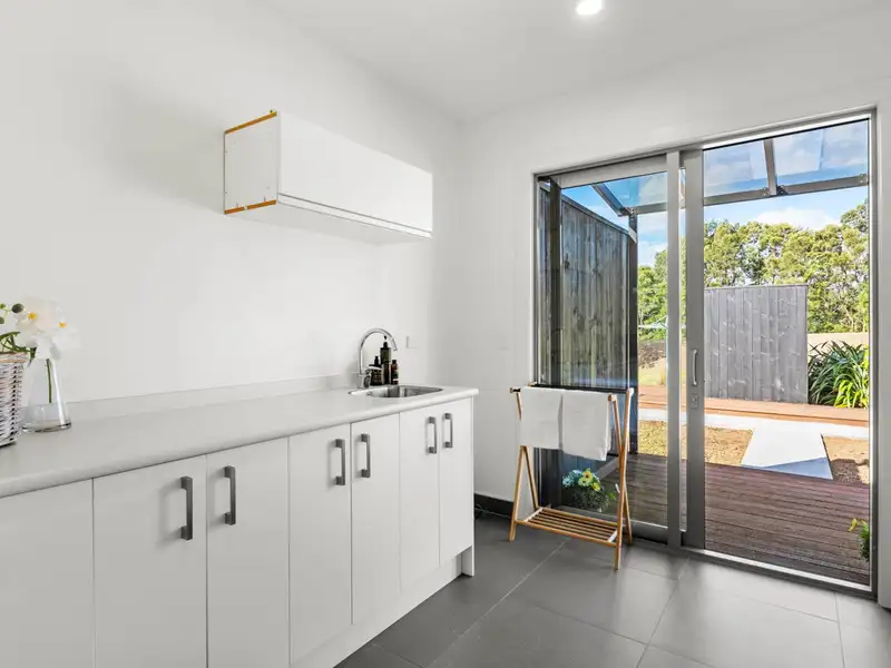 Thoughtful design is evident with one living room strategically placed in the dormitory wing for use as a study/rumpus room for the youngsters. There’s a separate powder room, a large well-appointed laundry with outdoor access and excellent storage provision. Centrally located, the modern kitchen basks in light-filled reflective surfaces with glossy tiled floors, granite benchtops, expansive cabinetry and quality stainless steel appliances. Super-spacious sophisticated family living and dining adjoin unsurpassed entertaining facilities with a massive media/entertainment room spilling out to ultra-large louvre-covered pergola and Kwila decks wrapping around idyllic leisure in the heated mineral swimming pool and spa and around the covered fire-pit.