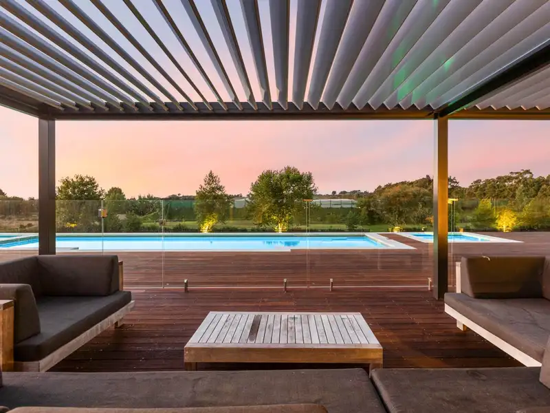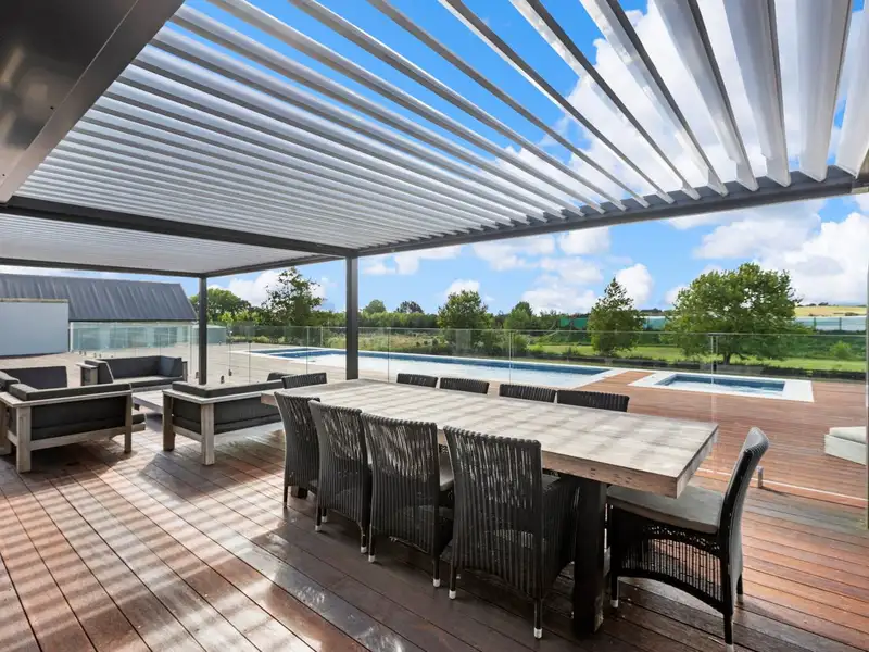 • Vast expanse of Kwila decks. Motorised louvred pergolas