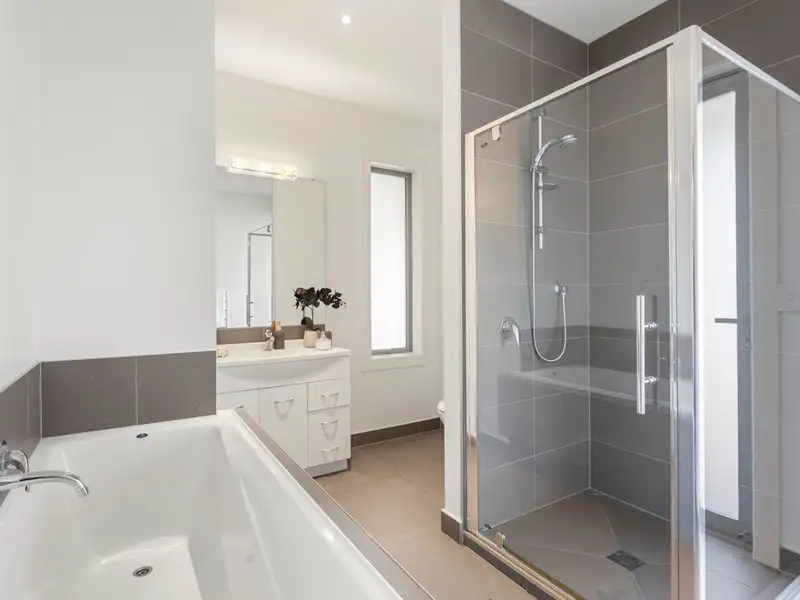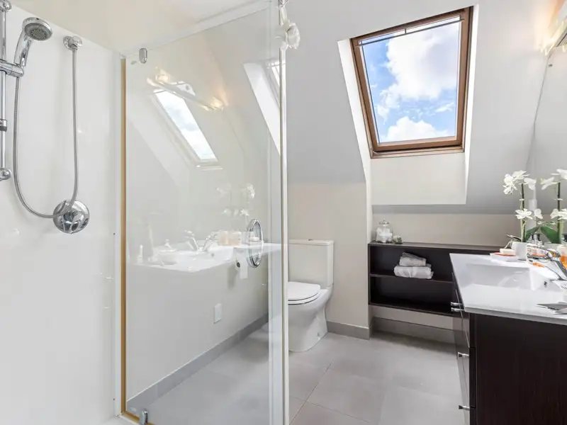 • Sleek family bathroom with free-standing bath & shower