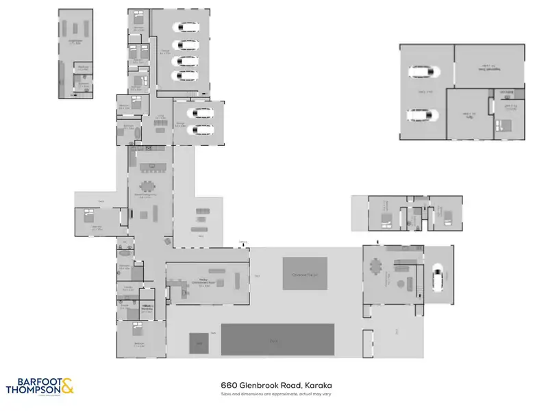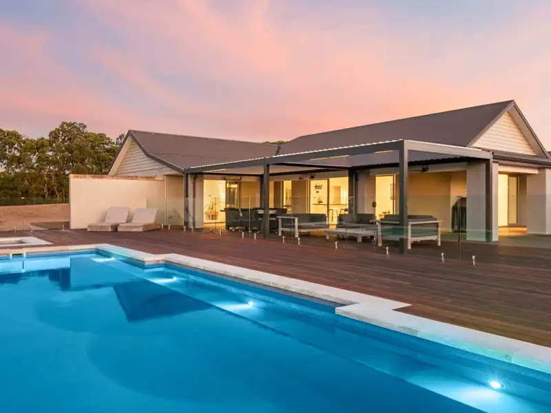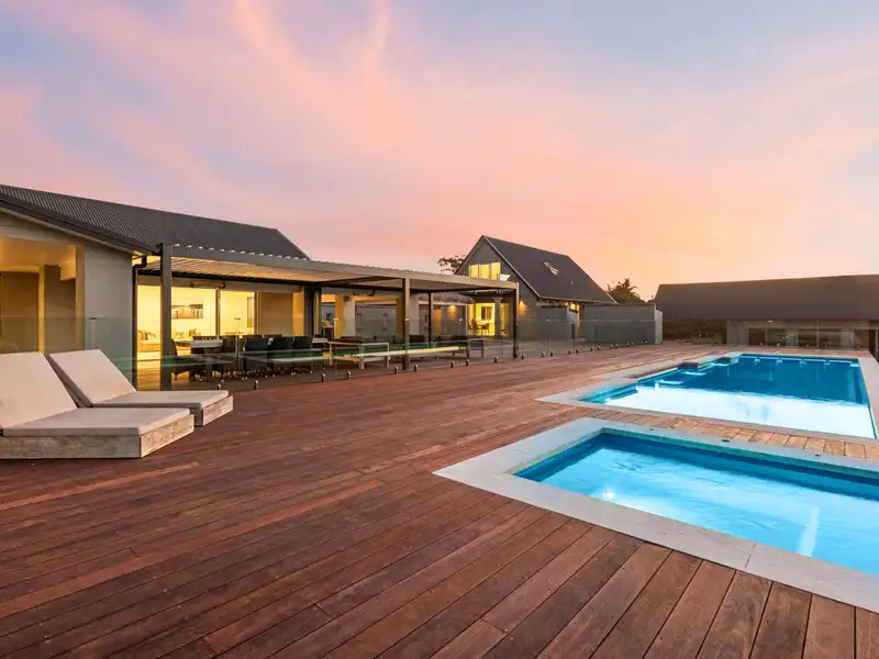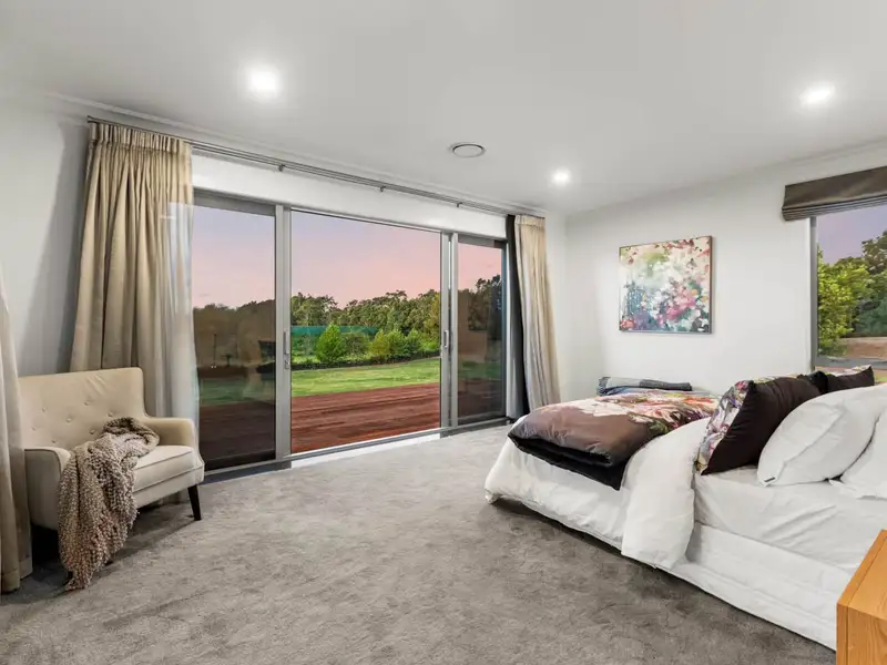 There’s a carport plus internal entry garaging for six cars with a man cave, plus bar and bathroom above and, on the opposite side of the pool, an impeccable 155 square metre (approx) two bedroom pool house stands ready to lavishly accommodate visitors. Further along the property there’s also a 130 square metre (approx) barn with multi-use room, shower and storage plus an implement shed and still so much space for further development if desired. Ducted air conditioning, security system, water tanks etc. There’s absolutely nothing to need in this super-sized, superbly equipped modern mansion.