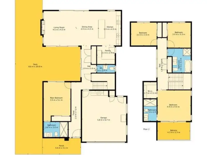 ? Two luxury ensuites (upstairs & downstairs), each with His & Hers shower heads and direct deck access
