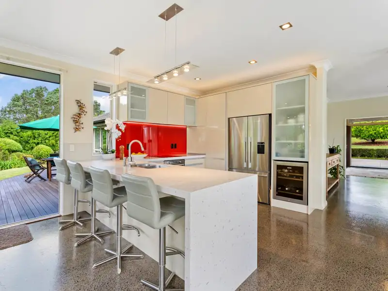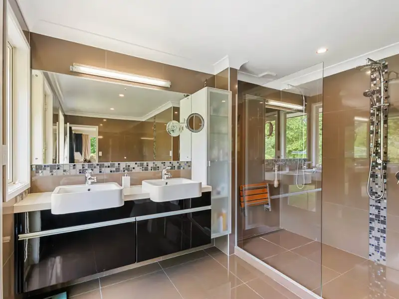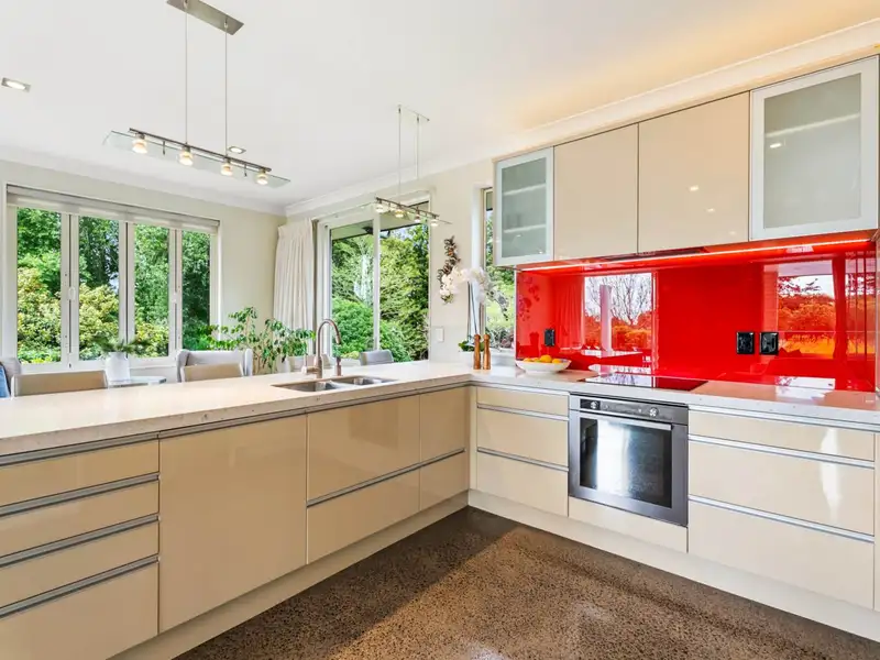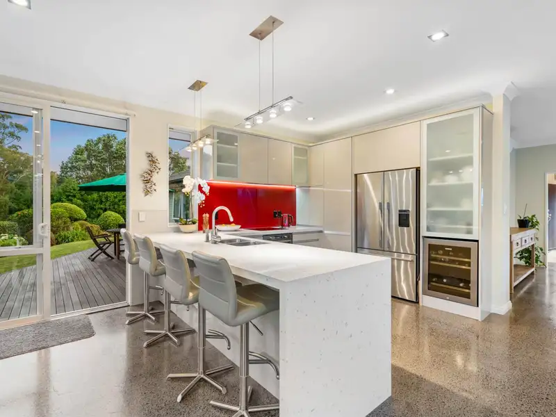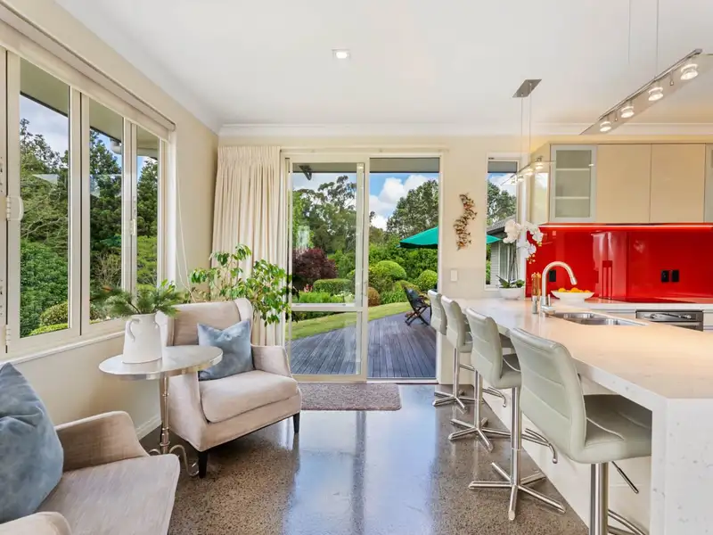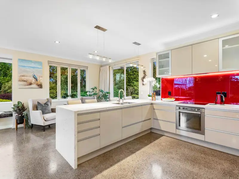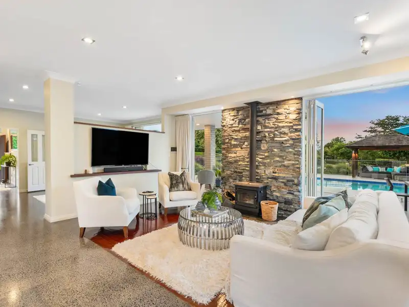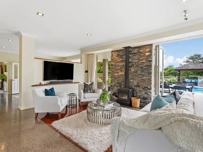 Step through stately wrought iron gates into a home where architectural flair is immediately apparent. Seamless social zones, polished concrete floors in the designer kitchen, and soaring high ceilings create an atmosphere of sophisticated comfort. Envision cozy evenings by the wood fire in the light-filled living areas, or hosting unforgettable gatherings in the formal lounge that extends to picturesque outdoor venues.