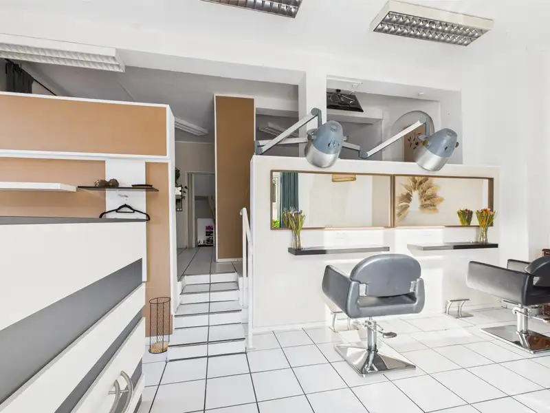 With a living space of around 225 m² and a plot area of around 320 m², the house offers enough space for a family as well as for additional commercial use. The property is divided into two separate residential units and a rented commercial unit, which is used as a hairdressing salon. This combination of living and working under one roof makes the property extremely versatile. The building has a total of seven rooms, including four generously proportioned bedrooms. Two modern bathrooms ensure a high level of living comfort and are perfectly tailored to the needs of the residents.