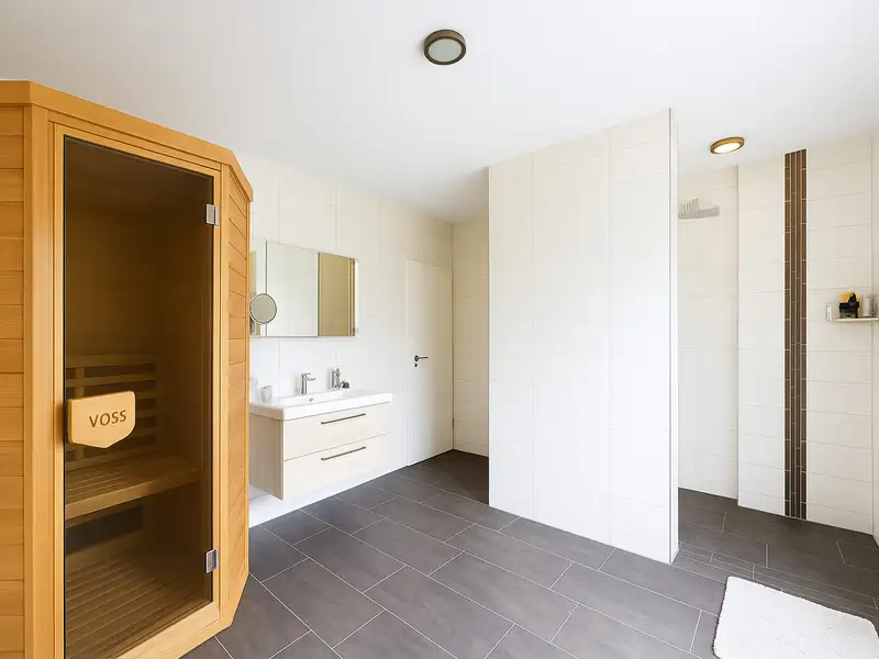 The lavishly landscaped garden with swimming pond, garden shed and recreational areas invites you to relax and creates an oasis of peace alongside the business use. This can be accessed directly from the living room through large windows.