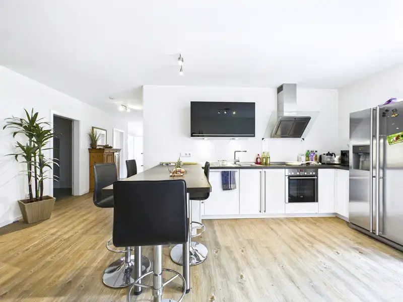 The private living area puts this property in a very special league: an exclusive interior with a high-quality fitted kitchen, open-plan design and modern living accents awaits you in a living space of around 268.16 m². A total of four high-quality fitted kitchens and an additional kitchenette are available throughout the property - ideal for flexible use by residential units, offices or commercial spaces.