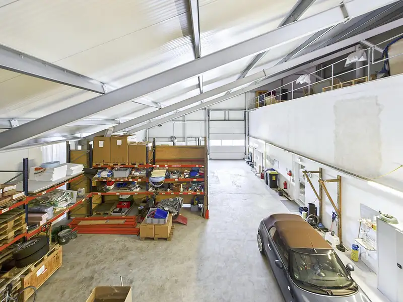 A modern commercial building was constructed on a spacious plot of approx. 3,334 m² in 2013 and extended again in 2015. It offers around 236.53 m² of versatile space on the first floor and a further 276 m² of reserve space on the upper floor, which is ideal for storage or future expansion.