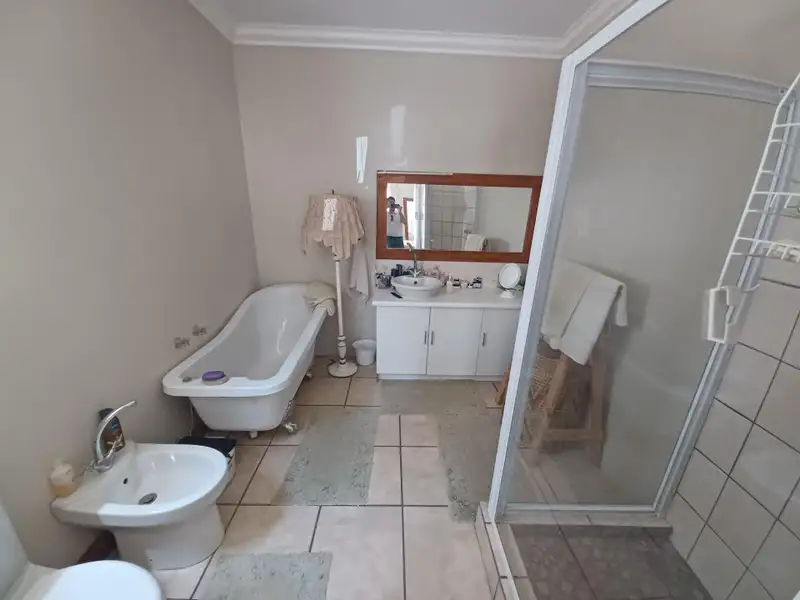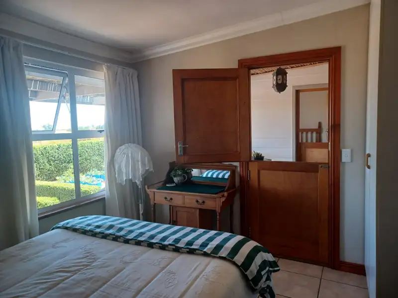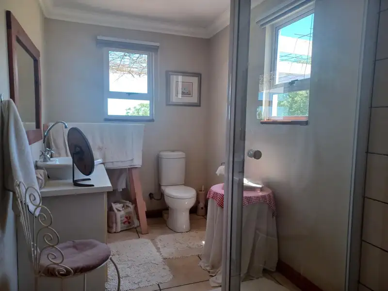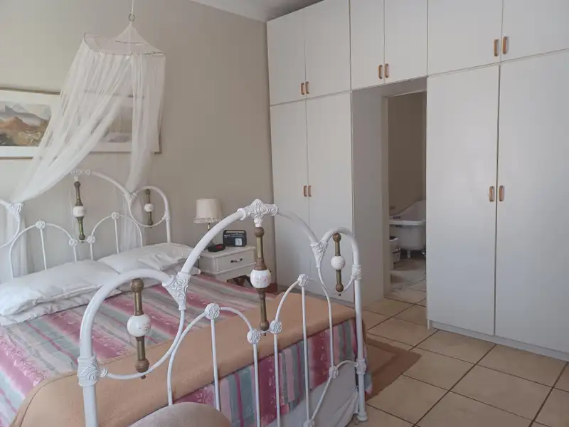 There is a study that leads from the dining area where all the admin is handled. Each bedroom has direct access to a bathroom and it easily houses a double bed. Build-in cupboards provide ample storage. The house is tiled throughout to make cleaning a breeze.