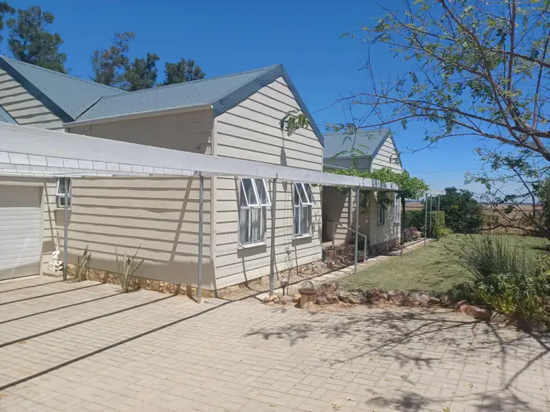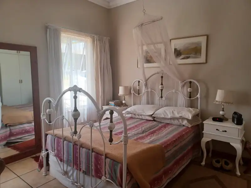 The double garage is on the east side of the house. It is to ensure the rooms get the best natural light and to appreciate the garden and the vistas of the farmlands and mountain, not to mention the beauty of a Sandveld sunset! This Nutec house, built on a solid foundation, adds charm and character to the residence.