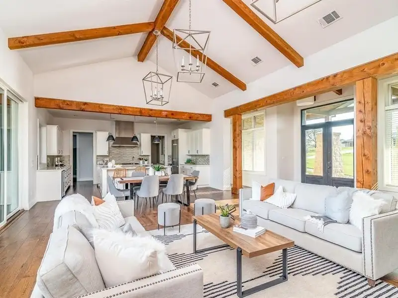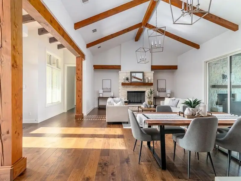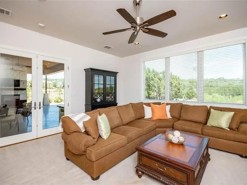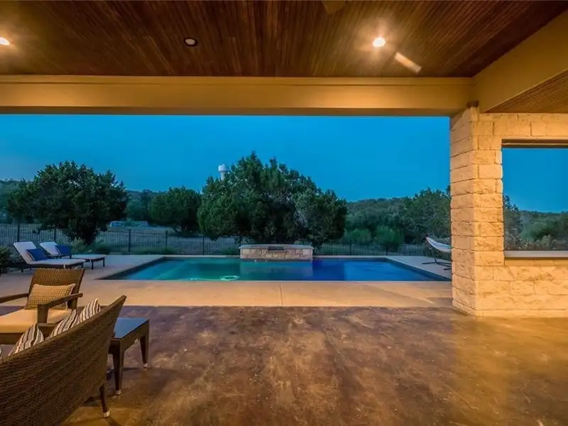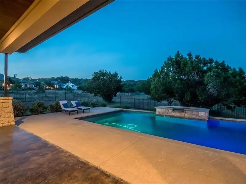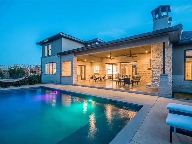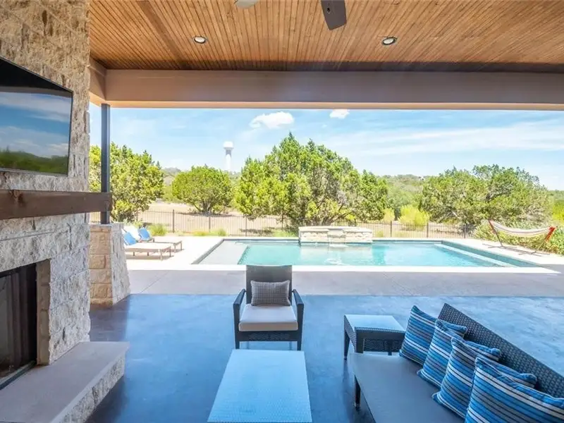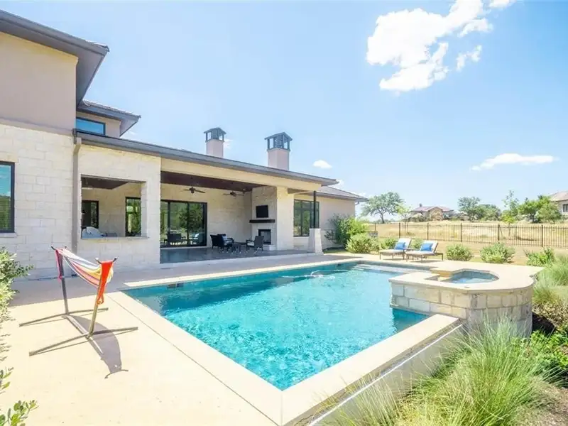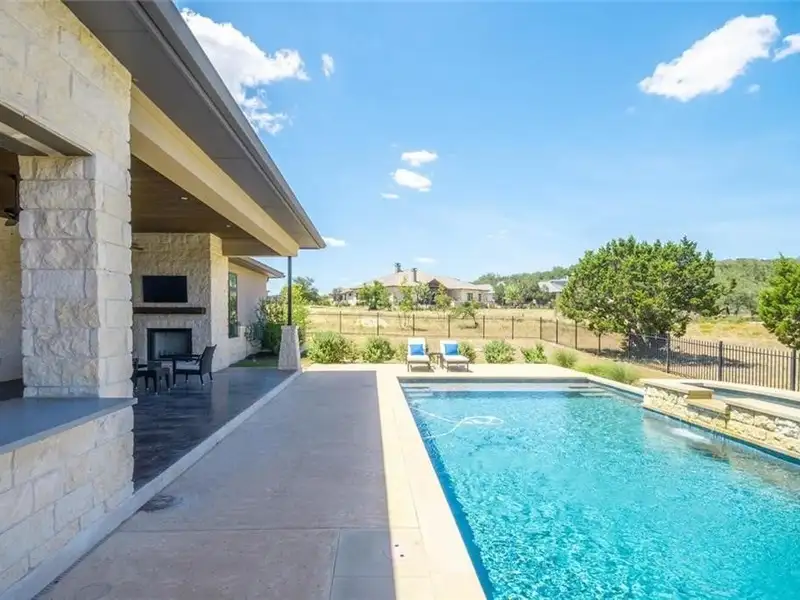 LOWEST PRICED HOME in Belvedere! Bring us an offer! MOTIVATED SELLERS! This 2016 Olson Defendorf masterpiece on a sprawling 1.6-acre lot offers a luxurious, open-concept floor plan perfect for entertaining. With beamed ceilings, recessed lighting, solid wood floors, and abundant natural light, this contemporary gem boasts style and sophistication. Enjoy panoramic hill country views and your own sparkling pool from the spacious covered patio, complete with a fireplace and built-in SS grill. The chef-inspired kitchen features Thermador SS appliances, double ovens, two dishwashers, a microwave drawer, quartz countertops, a large island, breakfast bar, and walk-in pantry. The owner's retreat is a bright sanctuary with bay windows, beamed ceilings, and an en-suite bath featuring a soaking/jetted tub, separate shower, and his/hers walk-in closets. This home also offers a private study, guest bedroom with en-suite bath, and a media room with a built-in sound system on the main level. Upstairs, enjoy additional living/flex space and two guest bedrooms. Belvedere living includes premium amenities like a lazy river, splash pad, sport courts, scenic trails, fishing pond, and more. Just 30 minutes from downtown Austin and zoned for award-winning Lake Travis ISD schools, this is your chance to embrace the Texas Hill Country lifestyle – schedule a showing today!