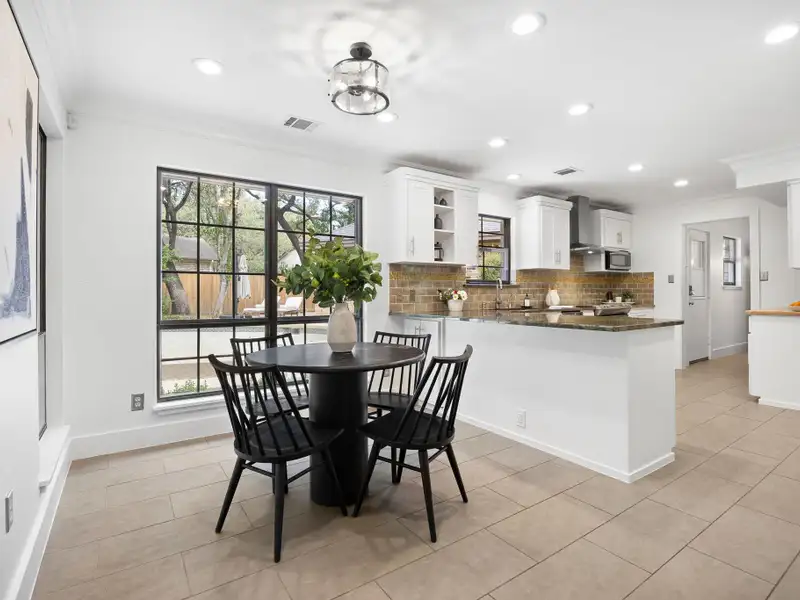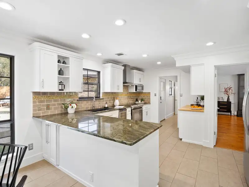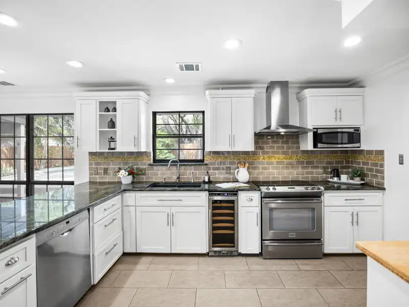 - Open, light-filled kitchen
