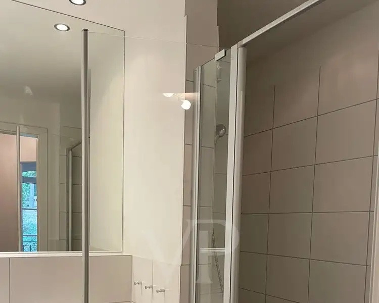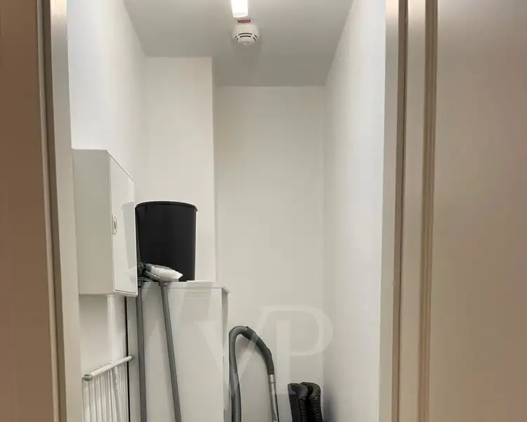 The bedroom has a double bed, a closet and a TV. The apartment is sold fully furnished and has a storage room.