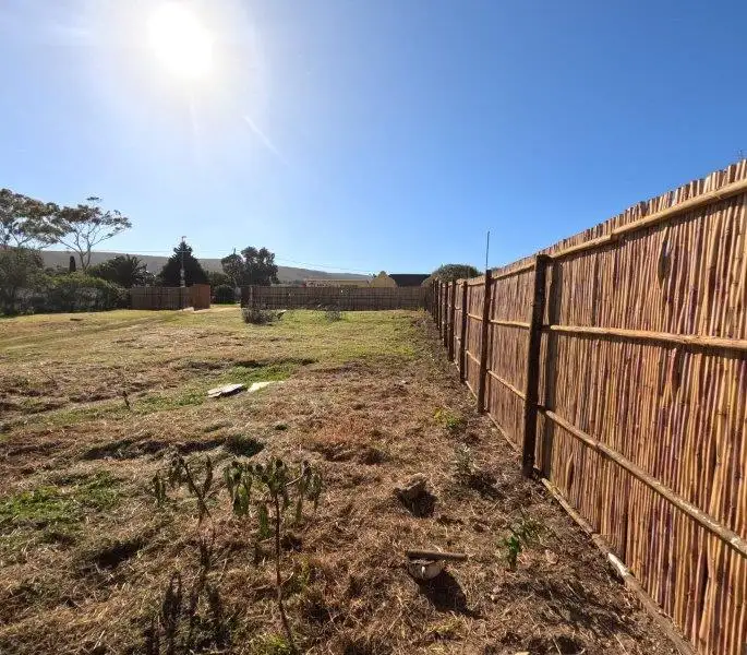 Sole Mandate. This 874m2 plot in the Main Road in the Village Baardskeerdersbos become available on 24 April 2025 ideally for a small cottage or a business opportunity due to its location, in this popular Agri village. This is one of the last small vacant plots currently used for agriculture purposes, etc. Completely fenced off with vertical bamboo reeds, entrance gate and direct access from the Main Road also called R43.
