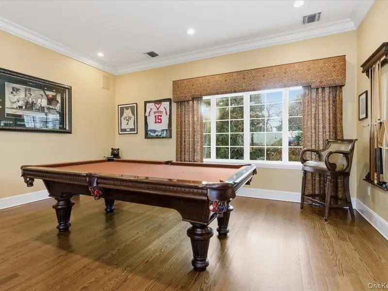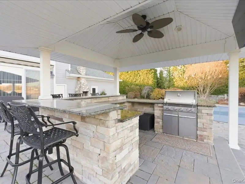 Welcome to an exceptional waterfront retreat, ideally situated along Babylon's largest natural waterway, Carll's River. Thoughtfully reconstructed in 2003 with steel beam construction, this home seamlessly blends timeless craftsmanship with luxurious modern amenities. A grand two-story foyer with an elegant bridle staircase and exquisite raised-panel woodwork sets the tone for the home's refined design. The entry features striking ceramic tile with an imported mosaic medallion, transitioning into oak floors with a herringbone inset and walnut border for added sophistication. The home offers multiple bedrooms, several boasting private balconies with serene views of the river. At the heart of the residence is a beautifully appointed chef's kitchen complete with a center island seating and dining area plus a well-equipped butler's pantry-with prep sink and additional wine refrigerator-opens to the formal dining room, where a gas fireplace adds warmth and charm. The inviting living room offers classic oak floors and a wood-burning fireplace, perfect for cozy evenings at home. Step outside to your private waterfront retreat, x zone location, offering 140 feet of sandy beach, a 22' x 40' boat slip, a pier with floating dock, and stunning views over the Carll's River. The resort-style backyard features an inground heated solar pool, pergola, jacuzzi, built-in barbecue, and gas fire pit, creating an ideal setting for both entertaining and quiet relaxation. This remarkable property delivers luxurious living, breathtaking water views, and every amenity for an unparalleled coastal lifestyle