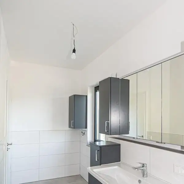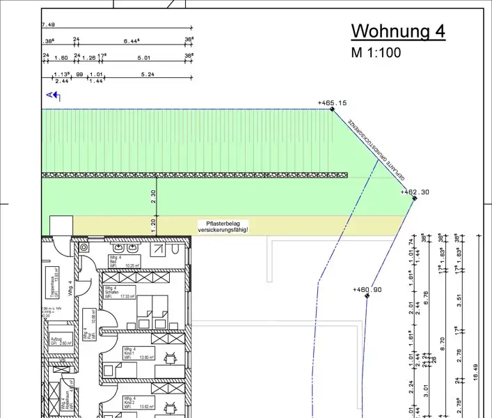 By fall 2023, six new condominiums will be built to the KfW 55 EE standard in Bad Kötzting's absolute best location in the coveted residential area "Am Schinderbuckel", some with unobstructed views. Construction is now well advanced; arrange a viewing appointment with us and see for yourself on site. The architecture is modern, bright and friendly. Appealing color schemes and clear shapes, high-quality materials in combination with clear lines and a lovingly thought-out, exclusive room layout create a unique living feeling. The approx. 115 m² 4-room apartment on the first floor can be reached at ground level directly from the building entrance via the staircase. The apartment has the following rooms: Daylight bathroom with shower and toilet, 3 bedrooms, storage room and the bright, light-flooded living / dining and cooking area. Impressive is the balcony with a wonderful panoramic view, which rounds off the entire living concept. If desired, a fireplace or pellet stove can also be installed; a centrally located chimney is already available. All living units are equipped with underfloor heating. From a pre-selected assortment, the materials for the interior finishing (tiles, parquet or vinyl flooring, interior doors and sanitary objects) can still be individually sampled according to your ideas. For shading, electrically operated Venetian blinds will be installed. The sanitary objects are purchased from well-known manufacturers such as Grohe or Geberit. The heat is generated energy-efficiently via an air/heat pump. In the entire residential complex, great importance is attached to energy-saving construction methods. Examples include the aluminum windows with triple thermal insulation glazing, the solid brick construction (stone on stone) and the decentralized ventilation of the living space. The purchase price already includes an outdoor parking space.