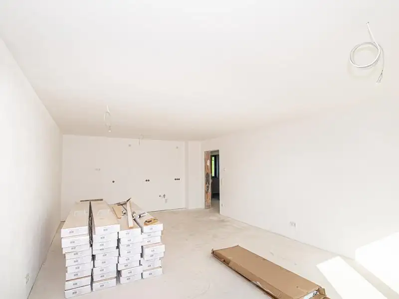 - Modern open living/dining/kitchen area