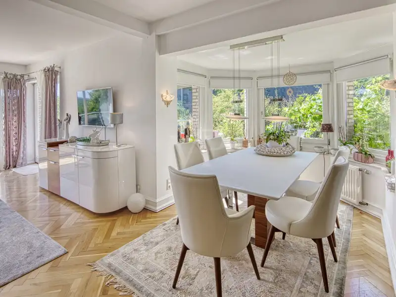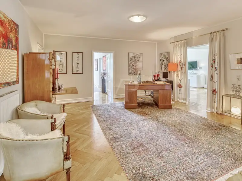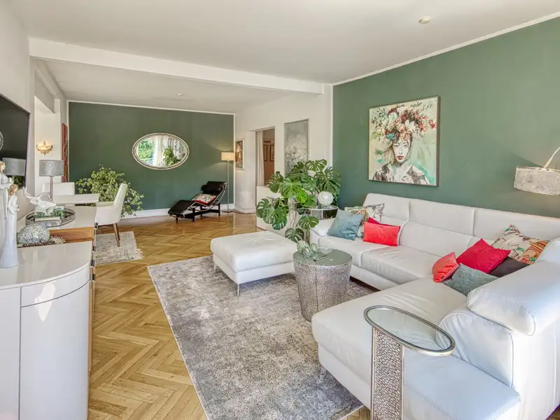 This spacious condominium on the first floor in a well-kept 3-family house impresses with a well thought-out, almost house-like floor plan, elegant furnishings and a living space of approx. 157 square meters. With its light-flooded rooms, high-quality materials and direct access to the garden, it is a real gem.