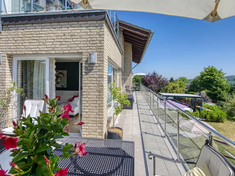 VON POLL Immobilien Euskirchen presents this exclusive first floor apartment with approx. 150 square meters of living space, upscale furnishings, balcony & direct garden access.