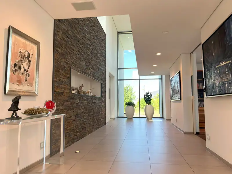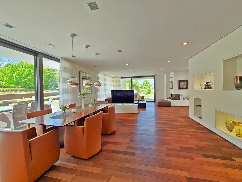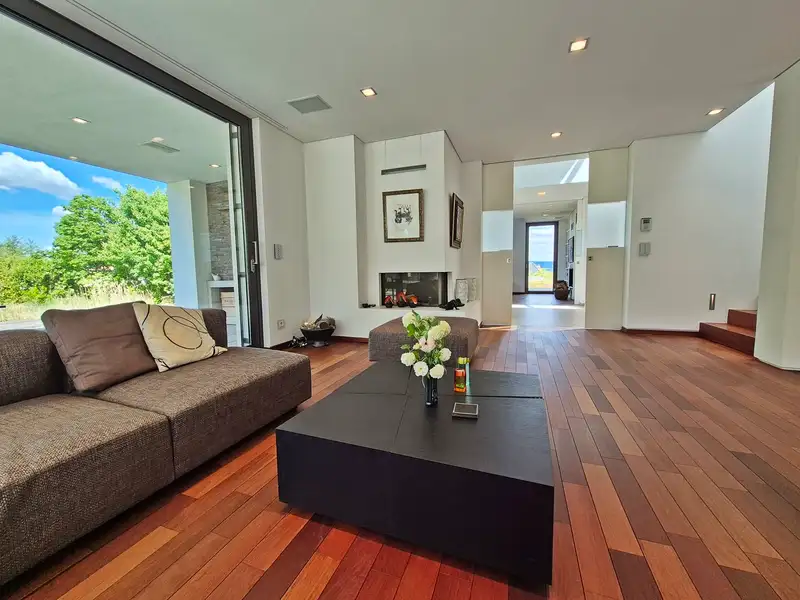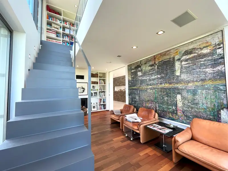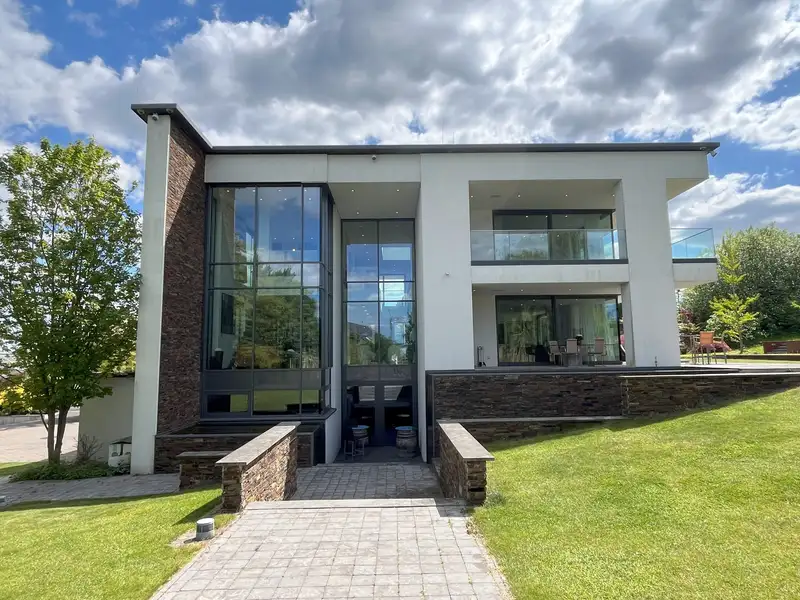 Built in 2010, this masterpiece combines modern architecture with a warm, inviting atmosphere. The generous living space of approx. 516 m² on a spacious plot of approx. 4,605 m² offers a harmonious symbiosis of design and nature. The centerpiece is the light-flooded living and dining area, which invites you to linger with its large windows and open design. Here, indoors and outdoors merge into a single experience: the terrace, with its water basin, waterfalls and a stream, invites you to end the day with a glass of wine while the sun slowly sinks into the horizon.