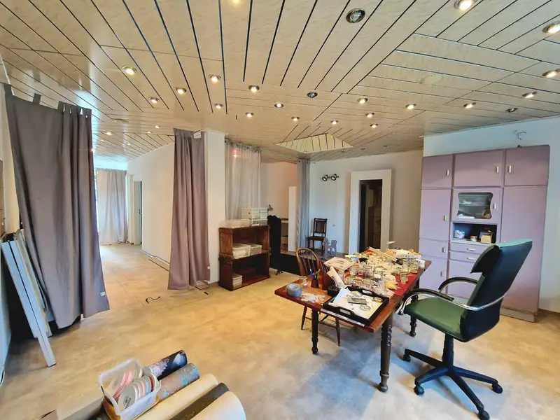 Particularly noteworthy is the side extension with a full basement and an area of approx. 70 m². This area is ideal for use as office or practice space, among other things. The extension has all the necessary connections, e.g. for a kitchen or bathroom; WCs are already available. It therefore offers the best conditions for professional or private use. A ground-level entrance also provides barrier-free access, which enables the conversion into an age-appropriate apartment. A lockable connecting door with a small staircase provides access to the main house.
