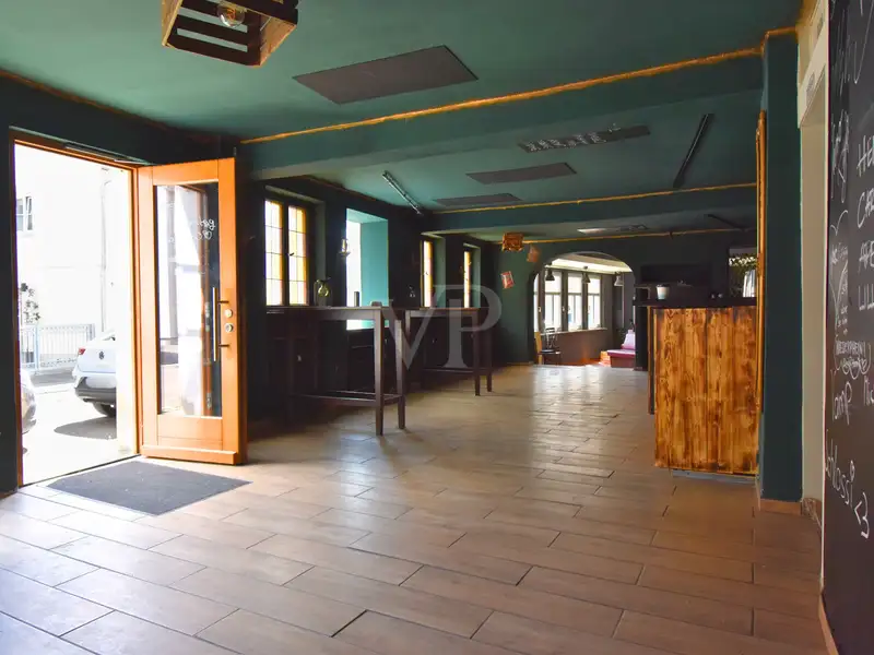As soon as you arrive, you are greeted by a spacious store that was extensively modernized in 2015 and is ideal for retail, services or gastronomy. The location is ideal Public parking spaces are located in the immediate vicinity and a practical roller shutter with integrated access door provides access to the enclosed property with inner courtyard. From here, you have access to the former restaurant and the directly adjacent residential building via the outdoor area/beer garden.