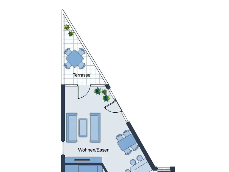 Upon entering the apartment, you enter a friendly, inviting hallway from which all other rooms are accessible. The well thought-out floor plan divides the living space into a spacious living room, a bedroom, a further (study) room and the open-plan kitchen. The living and dining area is generously proportioned and benefits from the floor-to-ceiling windows, which ensure optimal lighting conditions. From here, you have access to the large balcony, which offers space for seating and creates ideal conditions for relaxing hours outdoors.