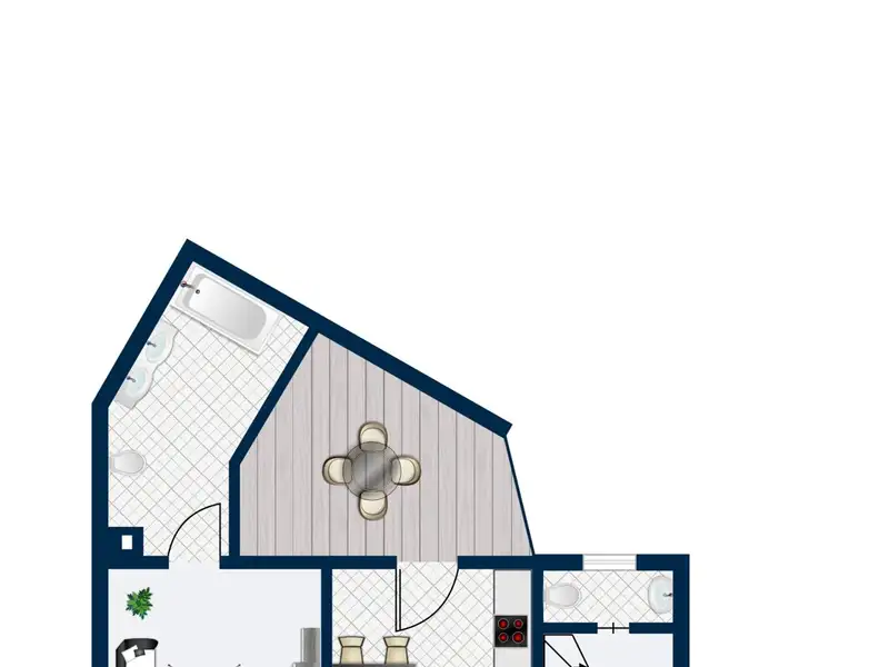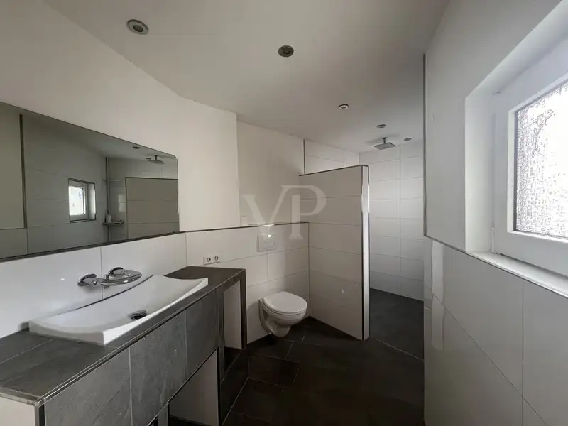The three separate apartments each have a modern daylight bathroom. Some of these bathrooms are equipped with a level-access shower, which further increases the utility value and comfort. Laminate flooring in the living areas and attractive tiles in the sanitary facilities ensure a pleasant atmosphere and easy-care surfaces. Each apartment also has its own guest toilet. Practical roller shutters on numerous windows provide flexible privacy and sun protection.