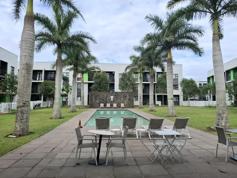 - Secure complex with pool and gym