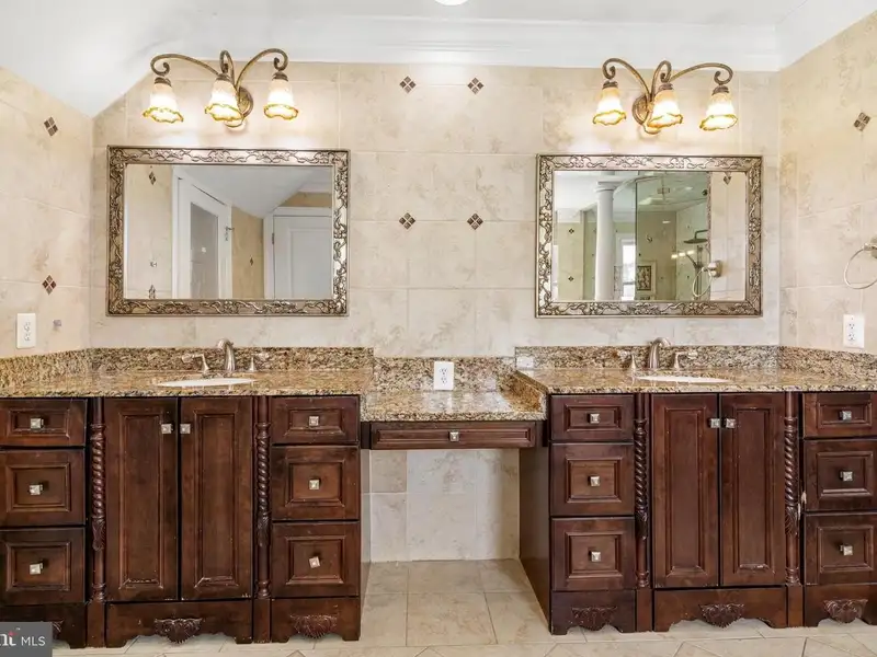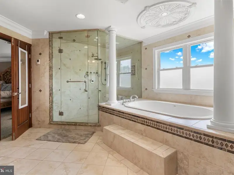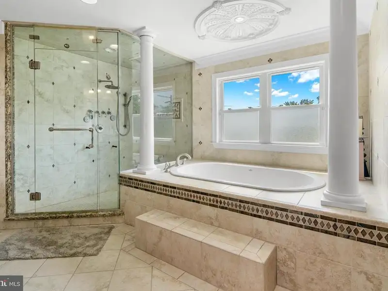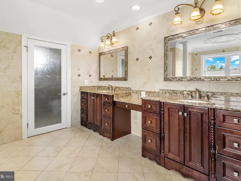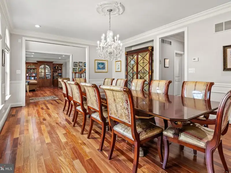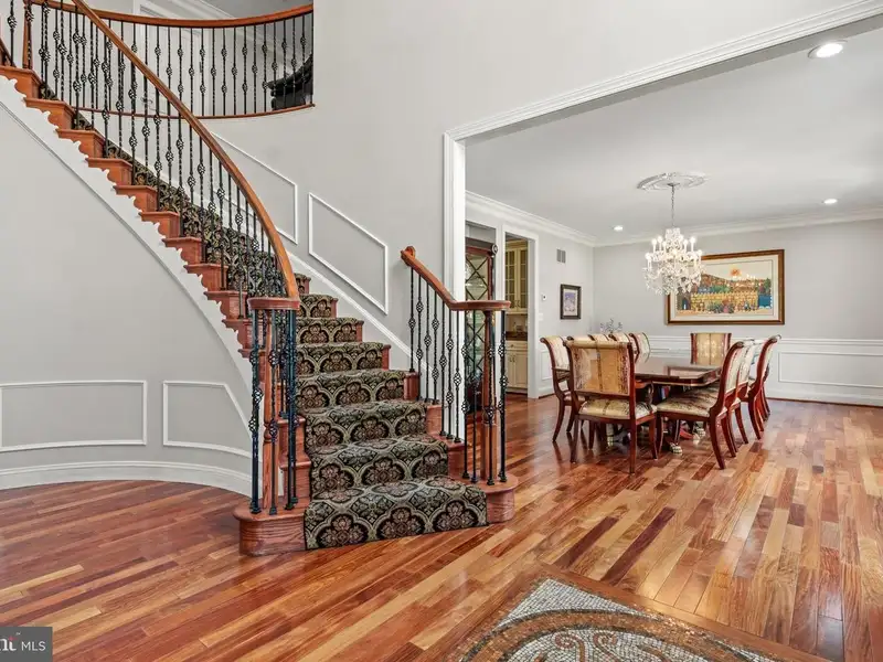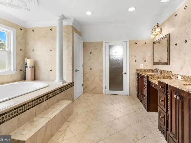 Welcome to this exquisite 6-bedroom, 4.5-bath Colonial, boasting over 6,000 square feet of meticulously crafted living space. Built in 2008 and nestled in a highly desirable Pikesville neighborhood, this property is a true gem offering comfort, sophistication, and space for the entire family. Main Level highlights include- breathtaking entryway with soaring ceilings, elegant curved staircase, custom mosaic floor with a dazzling crystal chandelier, a formal dining room with rich wainscoting, crown molding, medallion ceiling, and its own crystal chandelier, an expansive living room perfect for entertaining or relaxing. A gourmet chef's kitchen featuring stunning granite countertops and custom wood cabinetry, ceramic tile floors and massive center island with an under-the-counter microwave and oven, 2 sinks, 2 dishwashers, state-of-the-art appliances including gas Wolf range, a Sub-Zero paneled refrigerator and a separate Sub-Zero paneled freezer, Butler's pantry with additional cabinetry and sink, 2 large walk-in pantries and breakfast area with access to a maintenance-free deck and patio, Family room with cozy gas fireplace and adjacent powder room, mudroom with side entry and direct access to 2-car garage equipped with Tesla charger, and a guest suite with private full bath. Upper level includes double-door entry to the luxurious primary suite featuring a spacious sitting area, 2 large walk-in closets, Spa-inspired en-suite bathroom with jacuzzi tub, glass walk-in shower, dual vanities, walk-in linen closet, and private toilet with bidet. Upper level also features additional generously sized bedrooms (one currently used as an office), 2 full hall bathrooms and an open hallway with sitting area, a convenient upper-level laundry room with washer and dryer, and staircase access to full-size attic with roughed-in flooring, windows, and balcony access. The Lower level features a full-size, unfinished basement with 10-ft ceilings, plumbing rough-ins, and French doors leading to walk-out stairs to backyard oasis with deck, patio, and a charming children's playhouse. Exterior front includes beautiful landscaping and an oversized driveway for more parking. Additional highlights include high-end Santos Mahogany hardwood floors, custom crown molding, recessed lighting throughout, large windows offering abundant natural light, dual-zone HVAC system (one unit replaced in 2024) and 400-amp electrical service. This custom designed home is a rare find-perfect for families, entertaining, and enjoying luxury at every turn. Impossible to replicate at this price with today's construction costs. Don't miss the opportunity to make this dream home yours!