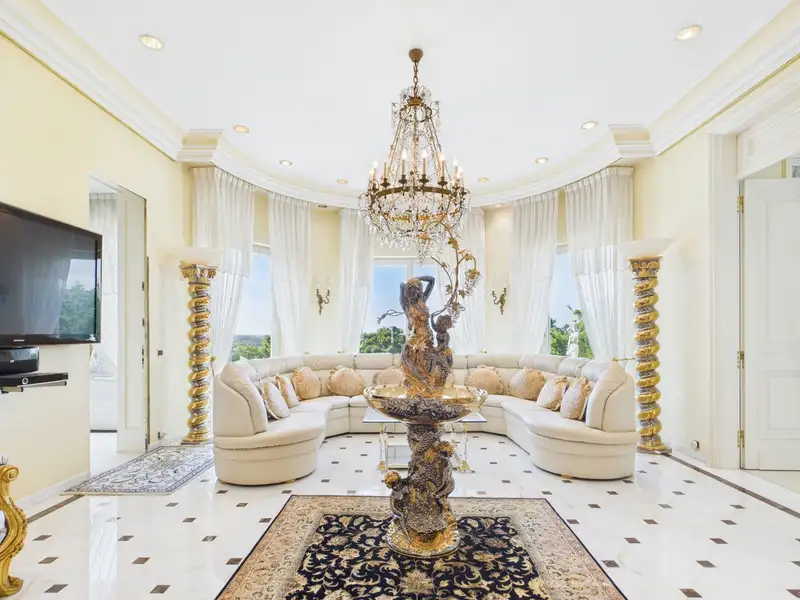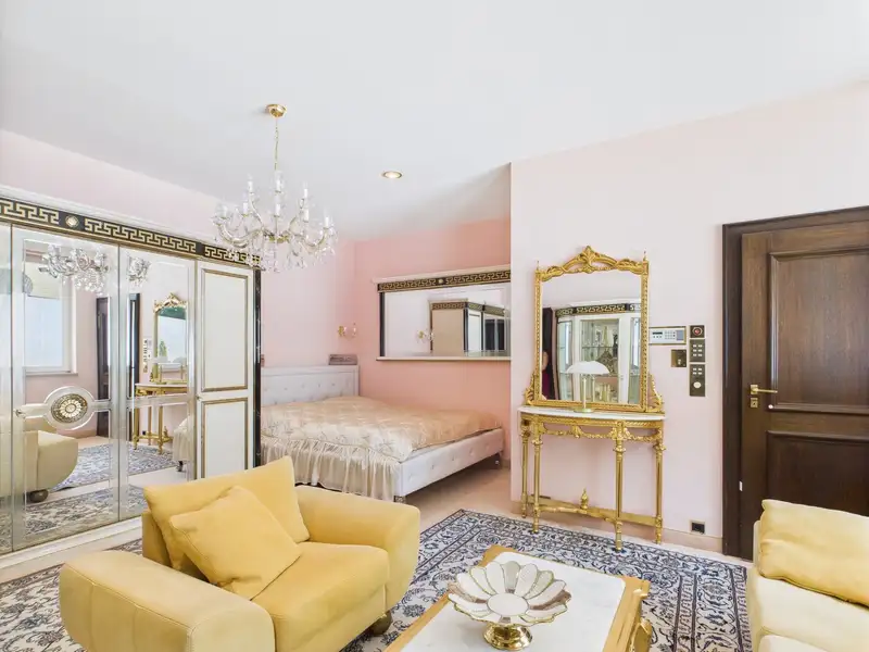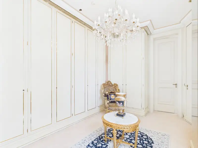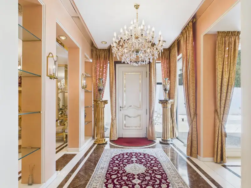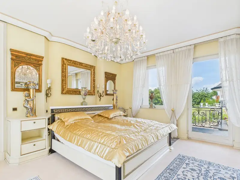 Exquisitely crafted marble floors with mosaic inlays, silk-covered fitted wardrobes, stylish ceiling decorations and finely coordinated Italian furnishings underline the prestigious character. Three luxurious bedroom suites with adjoining dressing areas offer maximum comfort and privacy. The main bathrooms are a gem of classic opulence - fitted with fine marble, built-in mirrors and gold-plated fittings.