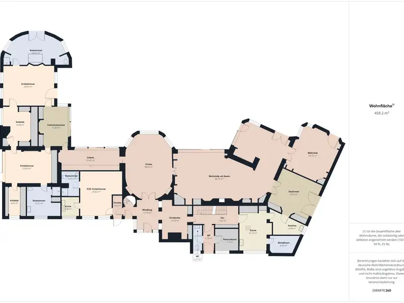 An impressive feeling of space opens up as soon as you enter. The light-flooded entrance hall leads into spacious reception areas, living hall, lounge, library, dining and breakfast room as well as an elegant gallery. Each room impresses with clear lines, spaciousness and an uncompromisingly exclusive interior.