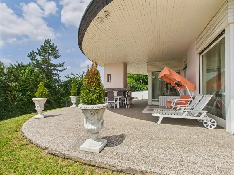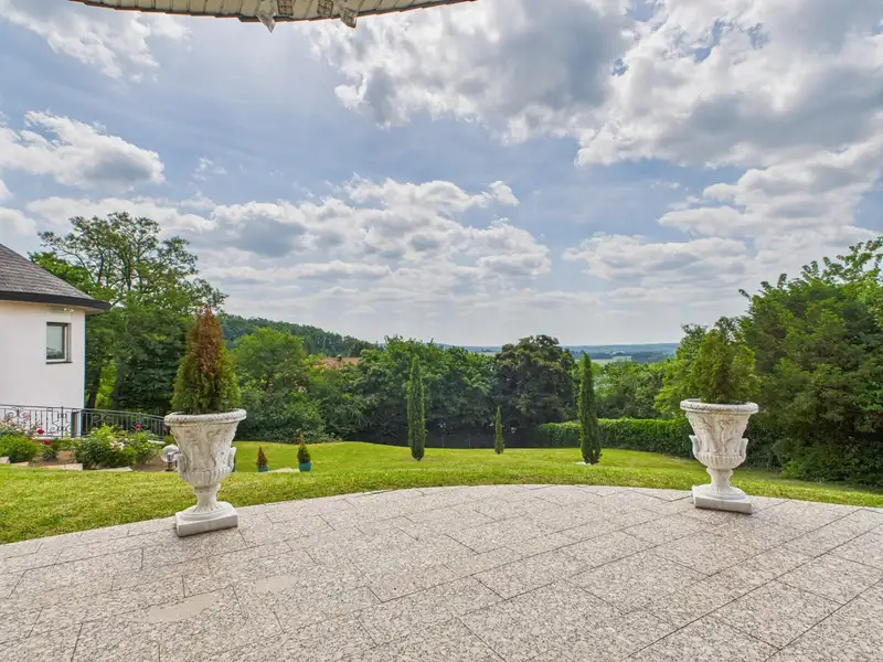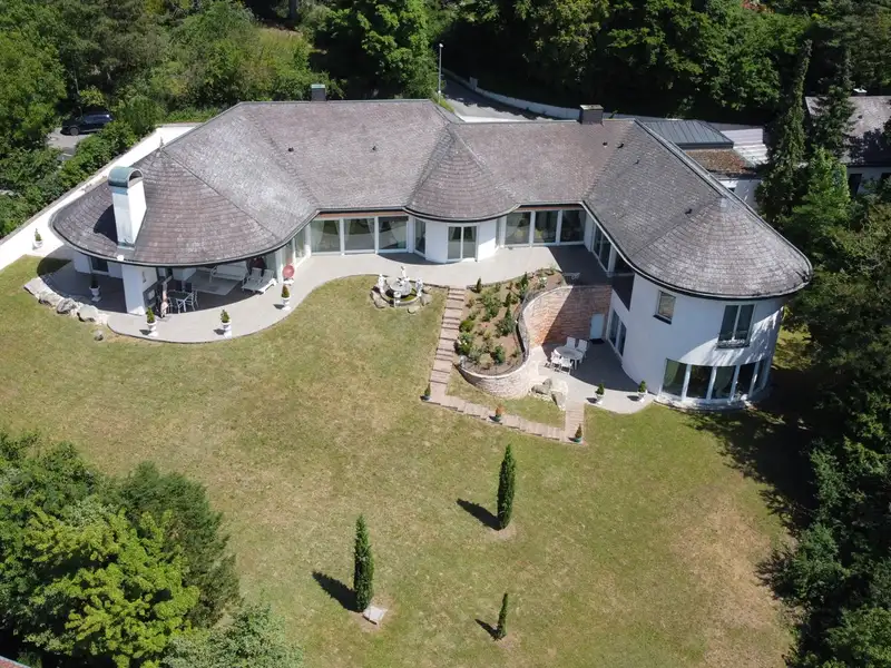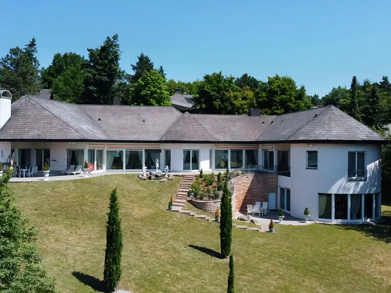 With a generous living space of approx. 620 m² - of which approx. 435 m² is barrier-free on the first floor - this residence meets the highest standards. The space on offer is complemented by a separate granny apartment of approx. 43 m² with a high-quality kitchen, an exclusive wellness area of approx. 150 m², spacious terraces and impressive views over the surrounding countryside. The completely secluded plot of approx. 2,758 m² guarantees absolute privacy and maximum comfort.