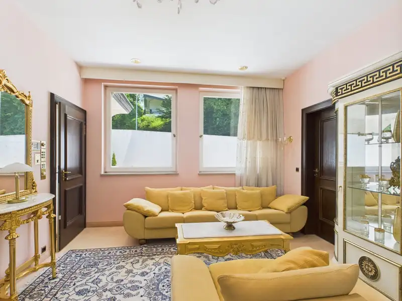 The outdoor facilities are as well thought-out as they are magnificent: a double garage, additional parking spaces and a lovingly landscaped garden with mature trees combine privacy, nature and prestige. The well-tended green area is ideal for retreats and stylish garden parties.