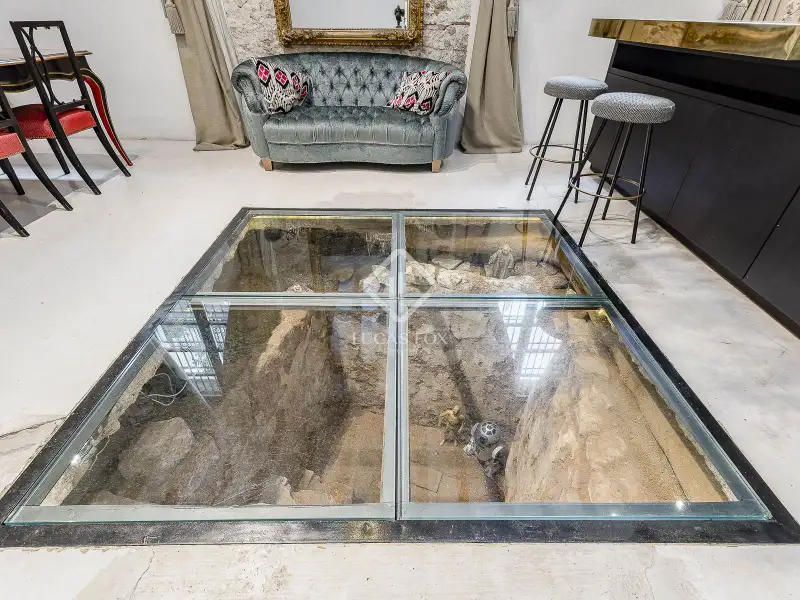 - Glass flooring reveals Roman ruins beneath kitchen