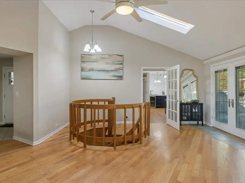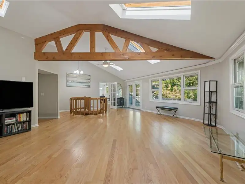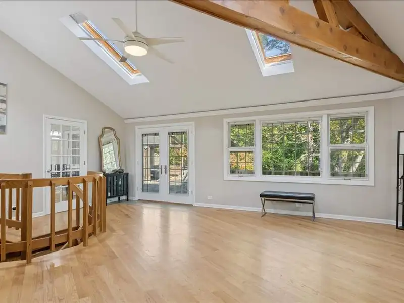 - Soaring beamed ceilings with skylights