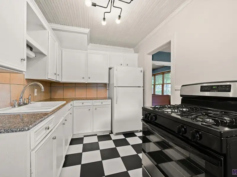 - Beadboard ceiling in kitchen