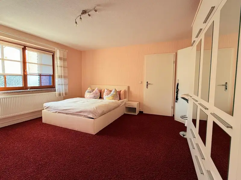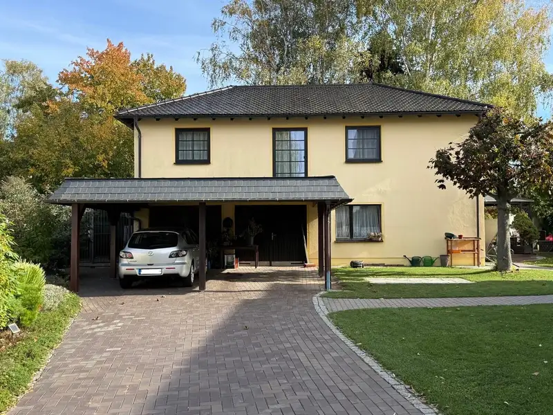 The adjoining house offers around 58 m² of living space and was added in 2000. It has a double carport and two separate garages, thus expanding the options for use for visitors, adult children or as office or practice space.