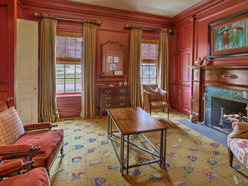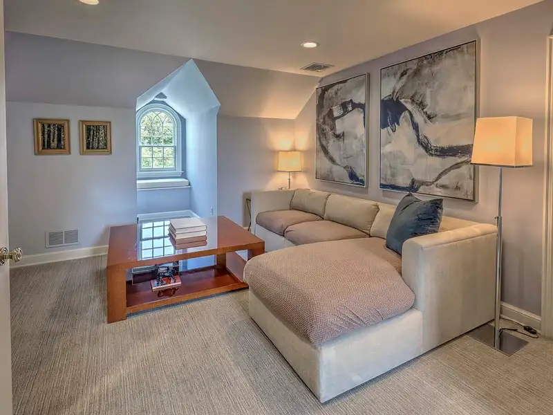 A detached three-car garage is designed with an adjacent horse barn offering three beautifully finished stalls, a kitchen, bath, storage room and access to a turn-out field. The barn's second level has a two-bedroom apartment and a separate bonus room, ideal for guests or staff. Originally built in 2000 and thoughtfully updated through the years, this architecturally-nuanced residence is finished in whitewashed brick, gray clapboard and a cedar shake roof. Its Bedminster location in Somerset County is celebrated for open green spaces, winding country roads and legendary estates, yet is only about an hour from Manhattan and approximately 45 minutes from Newark Liberty International Airport.
