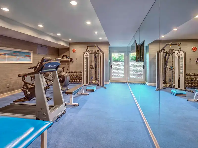 The third level was renovated in 2020 and offers a bedroom, full bath, sitting area and roomy cedar closet. The walkout lower level is accessible by stairs in both the entrance foyer and mud room area. Of special note is the Tuscany-inspired wine cellar which is temperature-controlled and provides storage for over 1,500 bottles. The beamed ceiling tasting room has a gas fireplace, terra cotta floors and a wrought iron chandelier. This level also has a home theater/media room with a wet bar, refrigerator and popcorn machine; a huge playroom; a home gym with glass doors to the yard; a full bath; infrared sauna and mechanical systems including a whole-house generator.