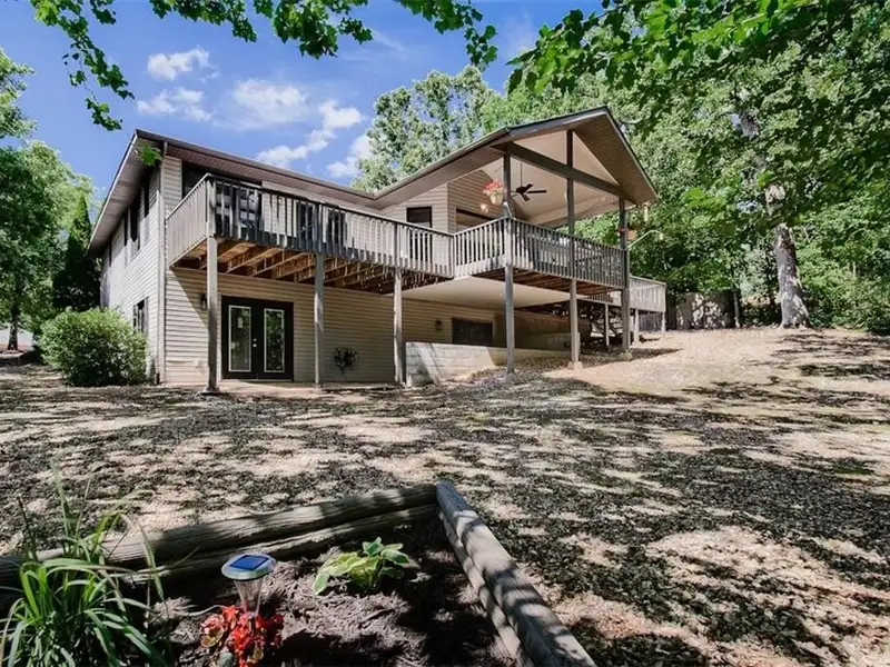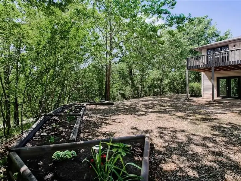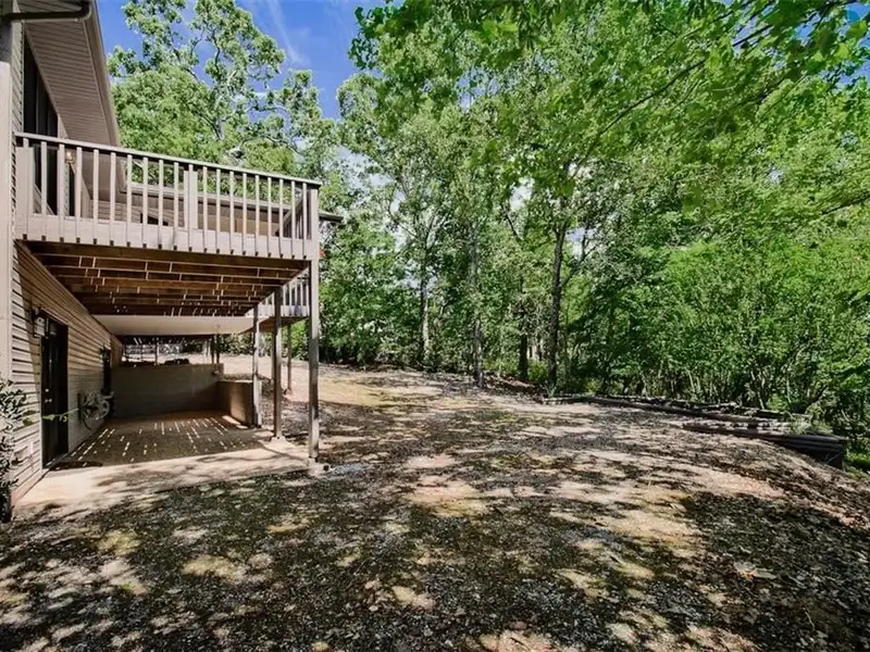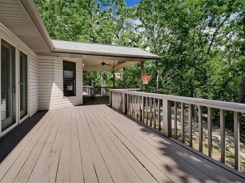 - Large partially covered back deck with forest views