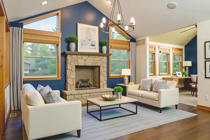 - High ceilings and wood flooring