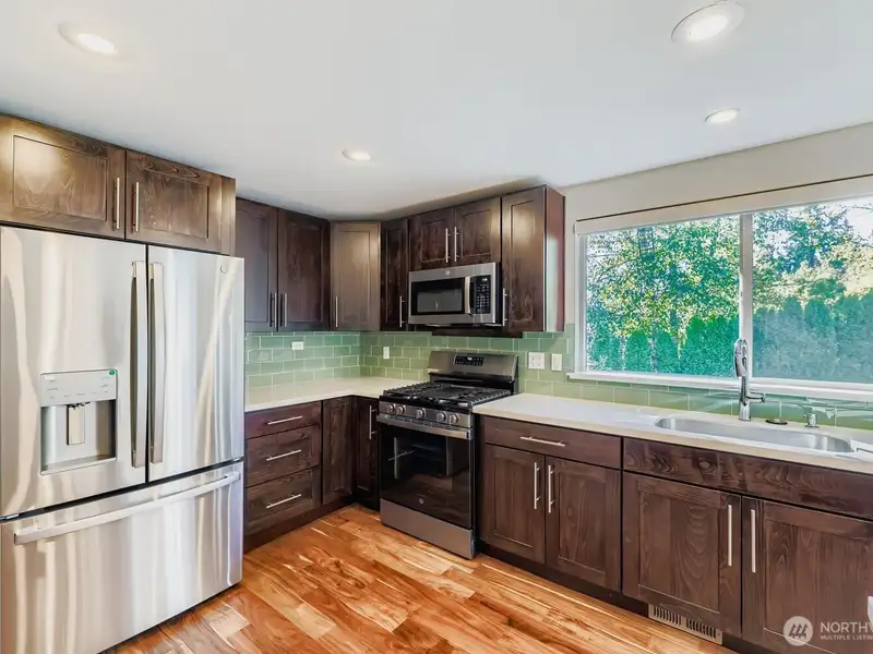 - Stainless steel appliances and custom cabinetry