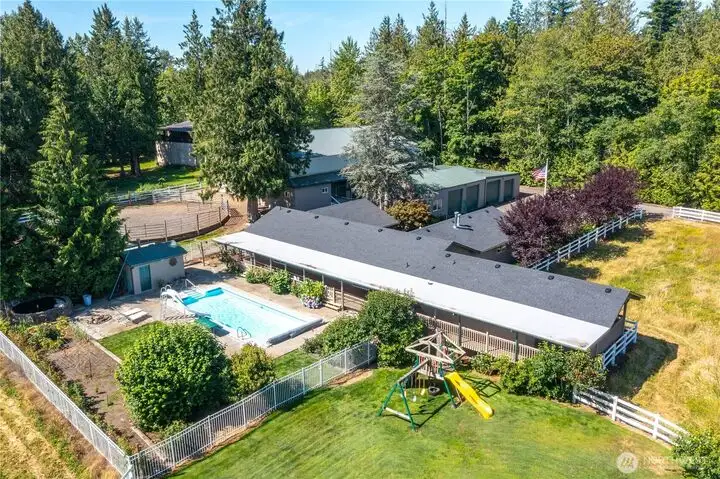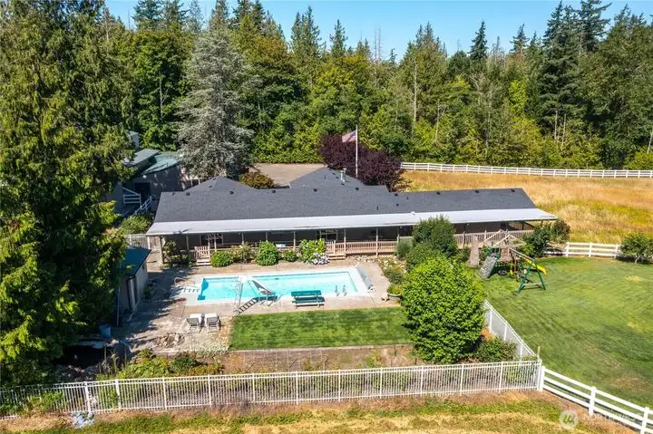 - In-ground pool and covered outdoor deck