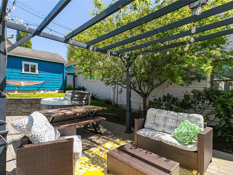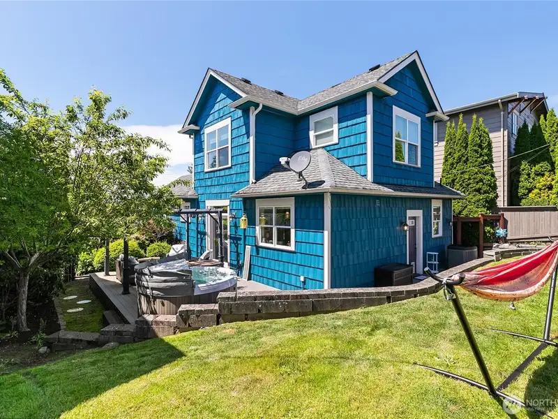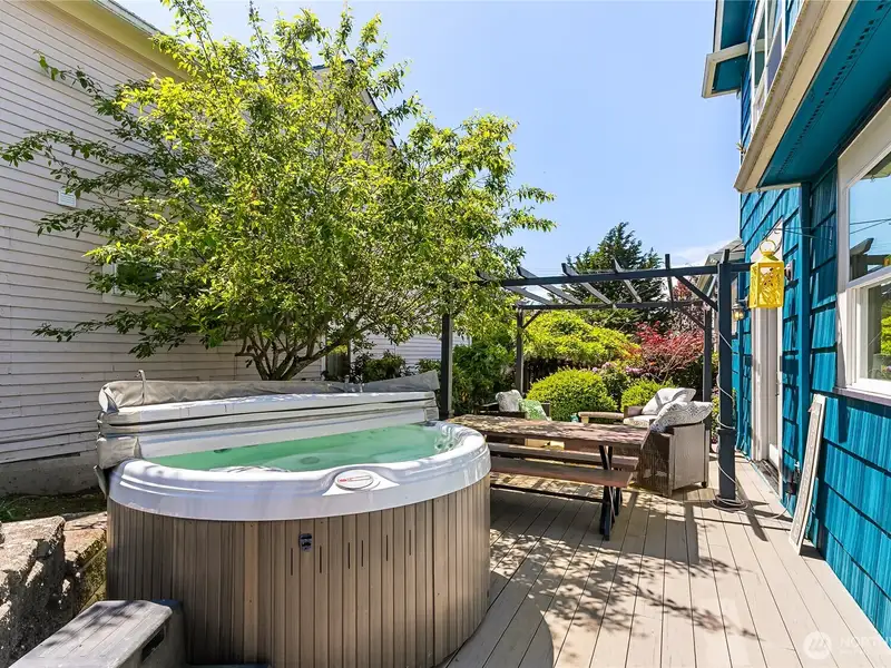 - Private side yard with deck and hot tub