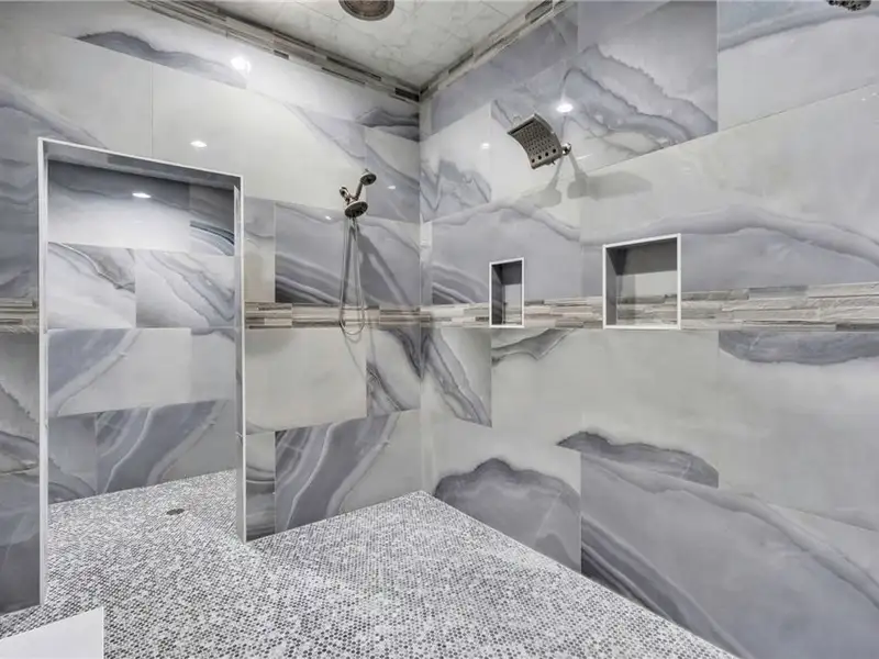 - Marble flooring and crystal chandelier foyer
