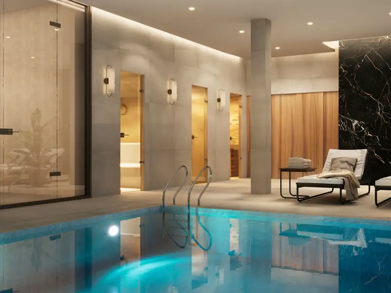 - Indoor heated pool with spa facilities