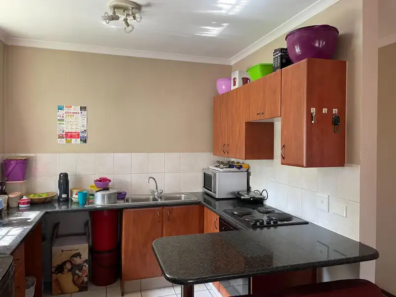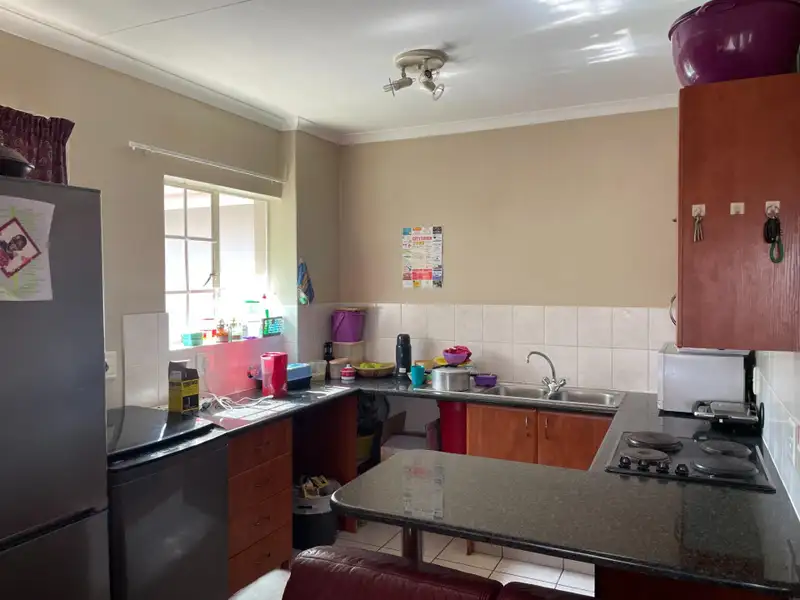 This first floor apartment is a spacious and well-equipped living space that offers a comfortable lifestyle. It has two large and well-lit bedrooms that are perfect for anyone seeking a relaxing space to retreat to. The main bedroom has an en-suite bathroom with a bathtub, while the other bathroom serves as a guest toilet with a shower. The lounge area is also spacious, providing plenty of room for entertaining and relaxation. The kitchen is neat and well-maintained, offering a functional space for preparing meals. The apartment boasts a balcony, which is perfect for enjoying the outdoors while still being protected from the elements. There are also two parking bays available, one with a covered shadecloth and the other open. The apartment complex itself provides an array of amenities, including a clubhouse, a pool, and a children's playground, making it an ideal location for families or anyone seeking a sense of community. Additionally, the apartment has 24-hour security with boomed gates, cameras, and armed response, ensuring the safety and peace of mind of residents.