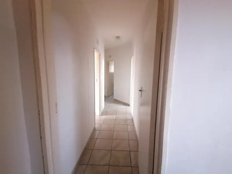 Welcome to this inviting and spacious 3-bedroom apartment, where comfort meets convenience. Each bedroom is equipped with built-in cupboards, with the main bedroom featuring a generous walk-in closet and direct access to a private balcony through sliding doors. The apartment includes a roomy bathroom that can accommodates a shower, plus a separate guest toilet for added convenience. A thoughtfully designed built-in cupboard in the passage offers extra storage space. The fitted kitchen offers plenty packing space, and it is designed to accommodate a washing machine, fridge and a free-standing stove. The entrance hall leads into an open-plan dining and lounge area, which also opens onto the balcony, perfect for relaxing or entertaining. The entire unit is elegantly tiled, highlighting its neat and appealing finish throughout. This apartment comes with one covered parking space and open guest parking. Located in the sought-after area of Morehill in Benoni. The complex is conveniently close to schools, a shopping mall, and major freeways. The complex is secure, featuring a boomed entrance, palisade fence and strategically placed security cameras to ensure peace of mind. Contact me to arrange a viewing and experience the comfort and convenience this property has offer. Features: Bedrooms : 3 Bathrooms : 1.5 Dining Area : 1 Lounge : 1 Parking : 1 Balcony :Yes Pets: Not allowed